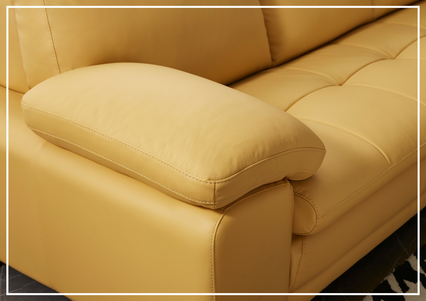 Designed for those who value enduring comfort and modern simplicity, the Gio Italia Vierra Sectional makes a lasting impression. Upholstered in rich, top-grain leather across all primary touchpoints, it delivers a supple yet durable feel that only improves with time. Its striking color brings character to your space without overpowering it, while the low-profile form and clean lines maintain a sleek, contemporary presence. Generous seat cushions and an expansive L-shaped configuration make it ideal for entertaining, relaxed gatherings, or quiet moments of rest.