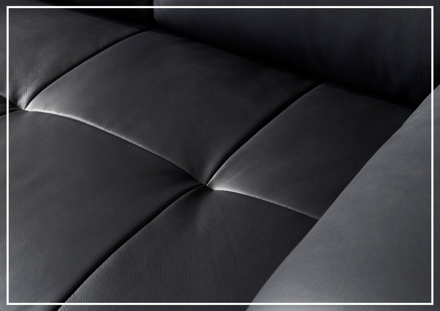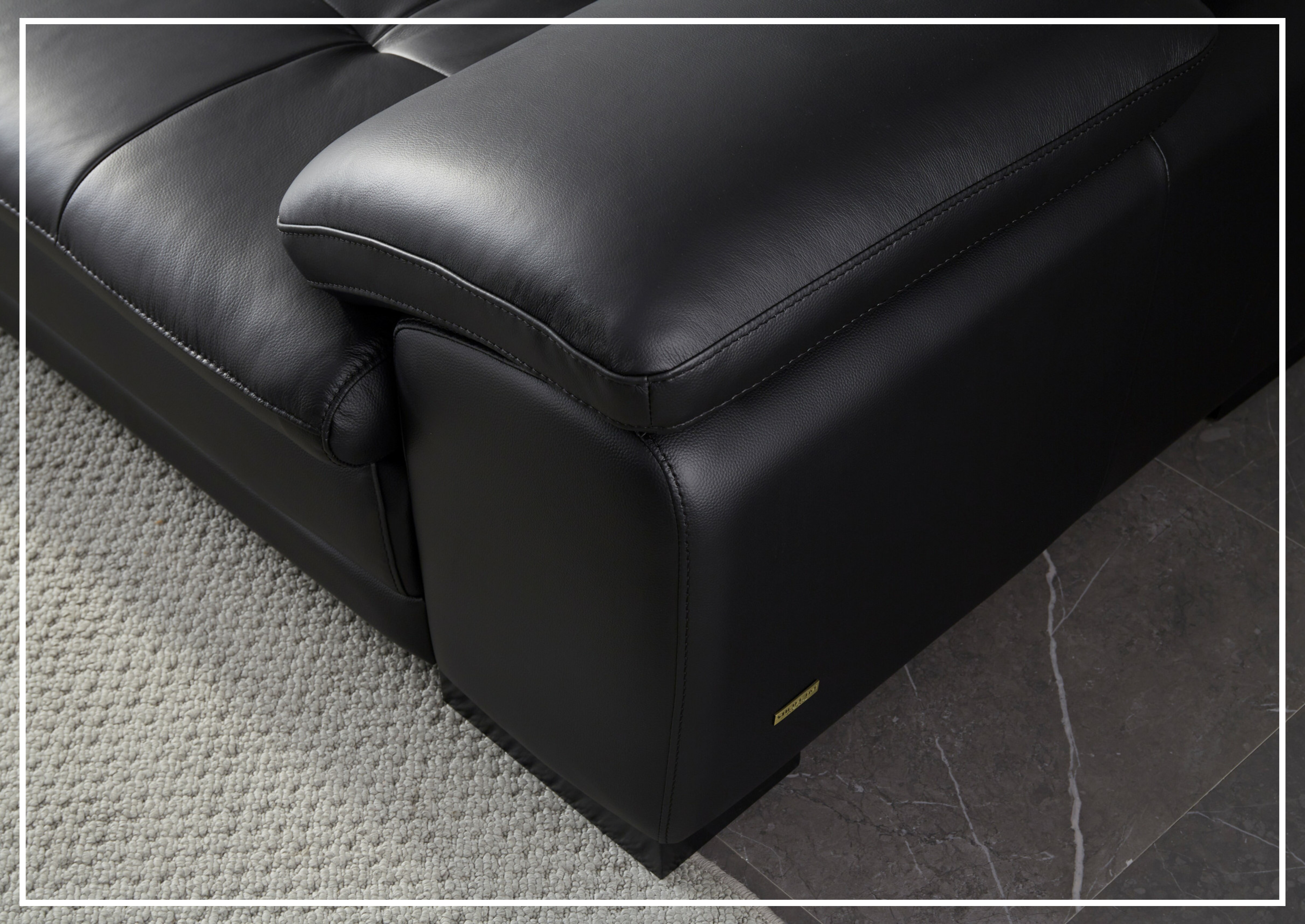 I wanted something modern yet comfortable, and this sectional delivers both. The clean lines and black leather give it a sophisticated edge, while the cushions are plush enough for long movie nights.