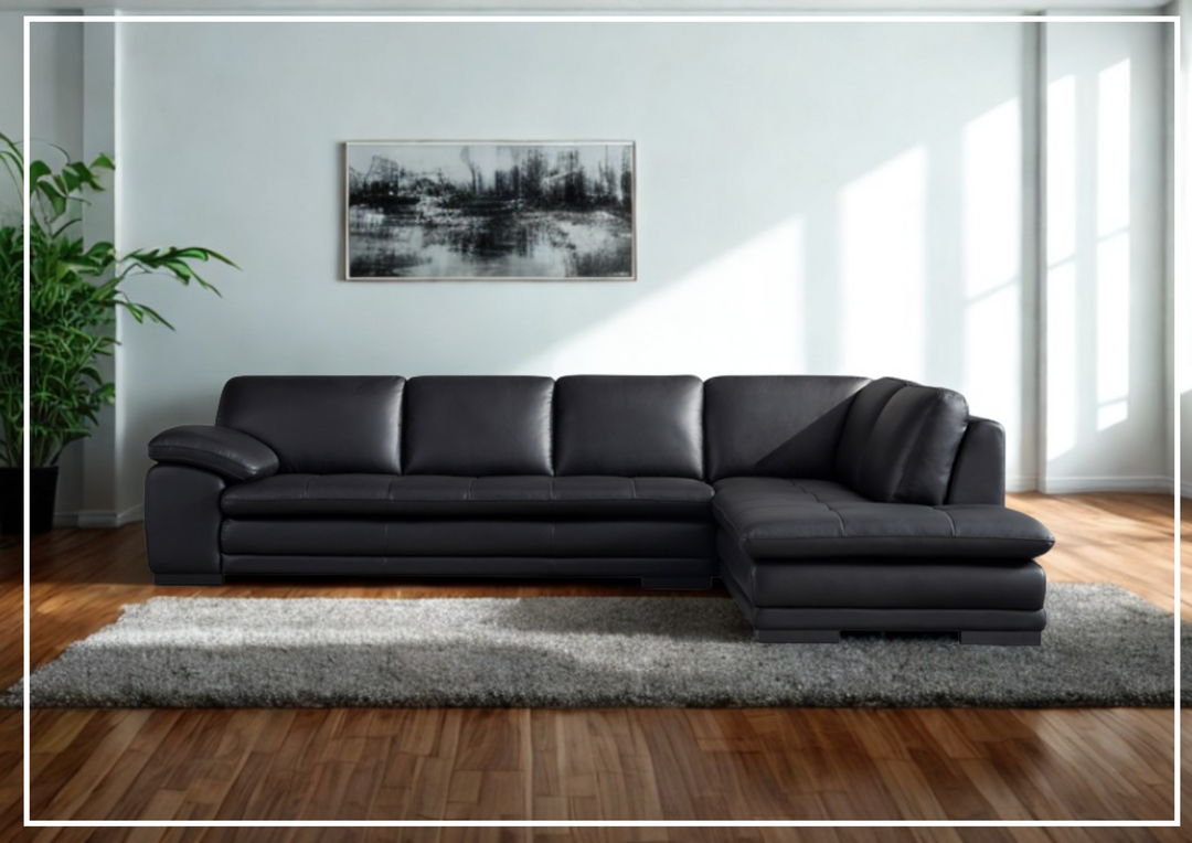 The standard L-shaped sectional sofa is prevalent in most households as it maximizes seating in a corner and helps create a defined boundary within a room. Its clean lines and angular design offer comfort while giving your room a modern look, making it suitable for contemporary living spaces.