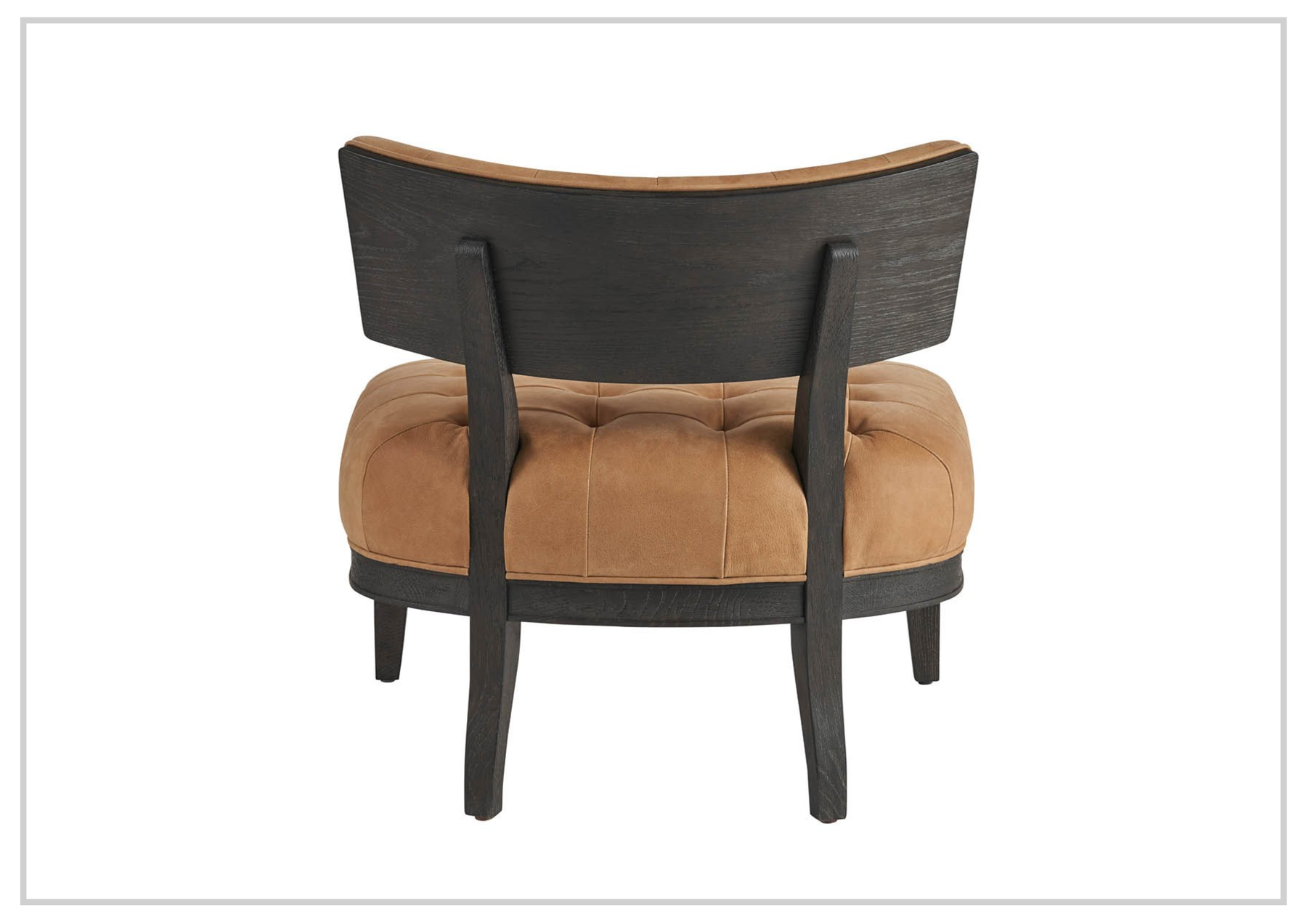 The Archie leather chair showcases a striking blend of warmth and structure, combining a richly upholstered seat with a bold wooden frame. The seat and backrest are upholstered in a warm tan material that appears soft and inviting, featuring deep button tufting that adds texture and a classic, tailored look. With a generous 23-inch seat depth and an easy 18-inch seat height, it offers that just-right seating experience-not too low, not too upright, but comfortably in between.