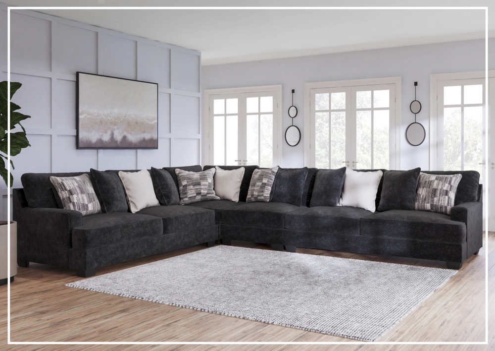 A perfect blend of contemporary style and luxurious comfort, this sectional offers a soft, plush microfiber upholstery that feels as inviting as it looks. Ideal for unwinding after a long day, its cozy seating and clean-lined design make it a must-have for modern living. The sleek track arms add a refined touch, while a mix of accent pillows in cream, black, and gray complements a variety of décor styles with ease.